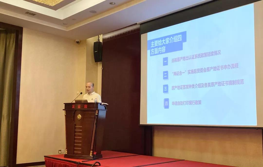 Mr. Wang Weipeng, Director of the Trade Investment Promotion and Legal Affairs Department of the Hui’an County Council for the Promotion of International Trade, explained in detail the application process of the CCPIT Certificate of Origin, the precautions for filling in the regulations, and the current policy of applying for self-printing.