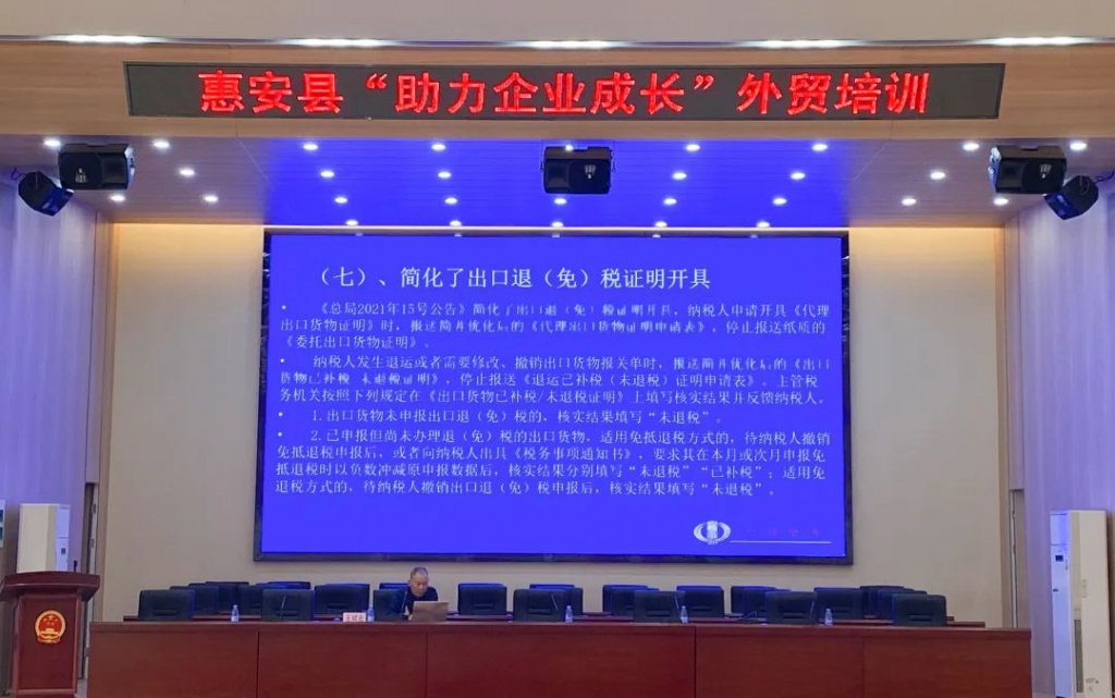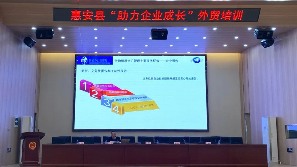 ? ? ? ? To coordinate with the epidemic prevention and control work, participants wore masks and sat apart. The training content mainly focuses on enterprise import and export business, involving relevant foreign exchange, tax declaration, customs clearance, import and export business practice, export credit insurance, common sense of certificate of origin, enterprise credit, bank financing, etc., and the targeted explanation is combined with the regional situation of Chongwu Town in Huidong.
