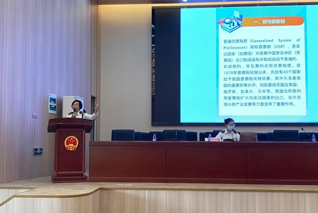 ? ? ? ? Ms. Wang Danni from Quanzhou Customs Office introduced the rules of Origin of FREE Trade Agreement and the application of its certificates, the policy of tariff concession for export goods, etc. Ms. Yan Shaoqun, director of Quanzhou Customs Office, explained the GSP tariff policy in detail and the latest customs policy for the students.