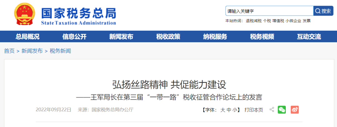 ? ? ? ? Director Wang Jun made a speech at the 50th Annual Meeting of the Asian Tax Administration and Research Organization (SGATAR), and further elaborated on the practice and vision planning of “Gold Tax Phase IV”. To sum up, it is to focus on the goal of building smart taxation and promote the “two, three, four integration”.